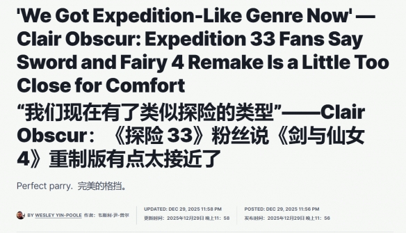 IGN直言道,《仙剑奇侠传四重制版》预告片中呈现的动态UI、强调动作性的弹反机制,甚至战斗镜头的调度与切换方式,都容易让人联想到《33号远征队》。这一观点迅速在海外玩家社群中引发争议。