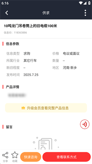 4、浏览物品信息后可以点击下方查看联系方式与卖主联系。