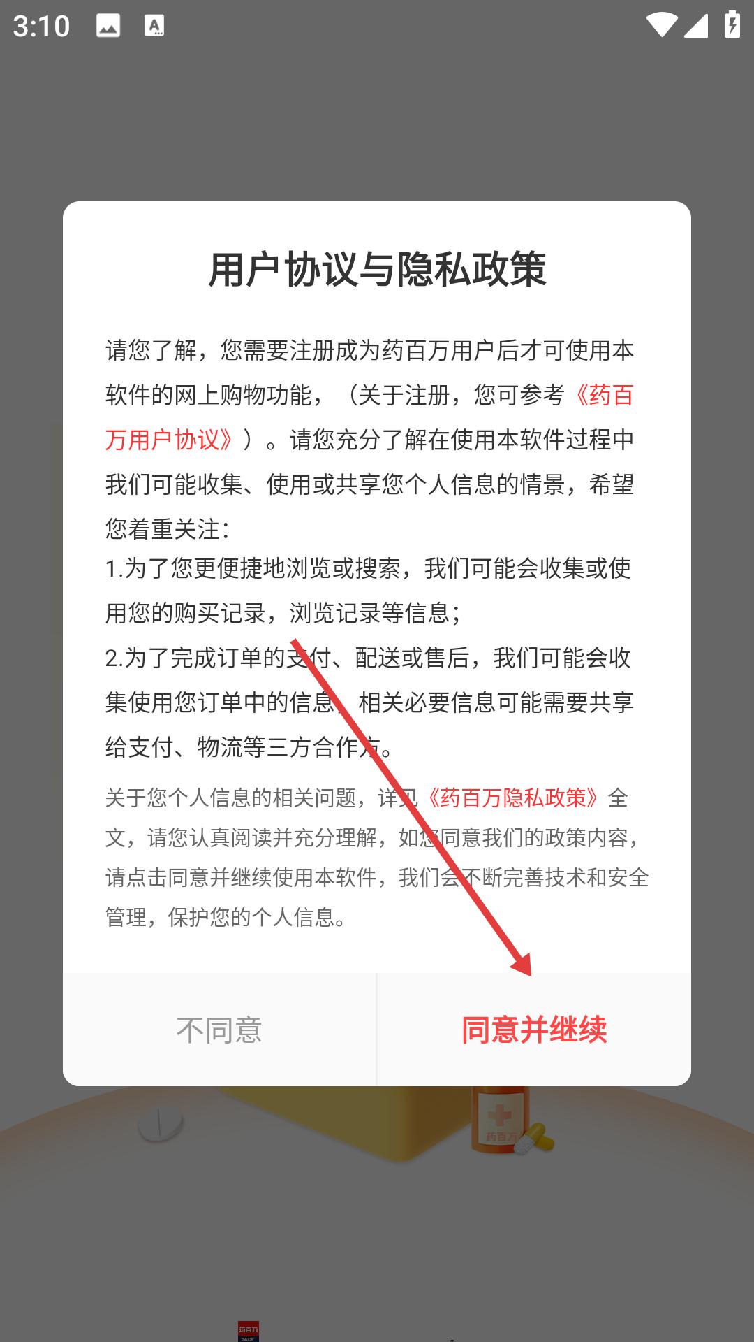 1、下载安装完成后,您需要在用户协议和隐私政策界面点击“同意”。只有在接受相关条款后,您才能进入申请。