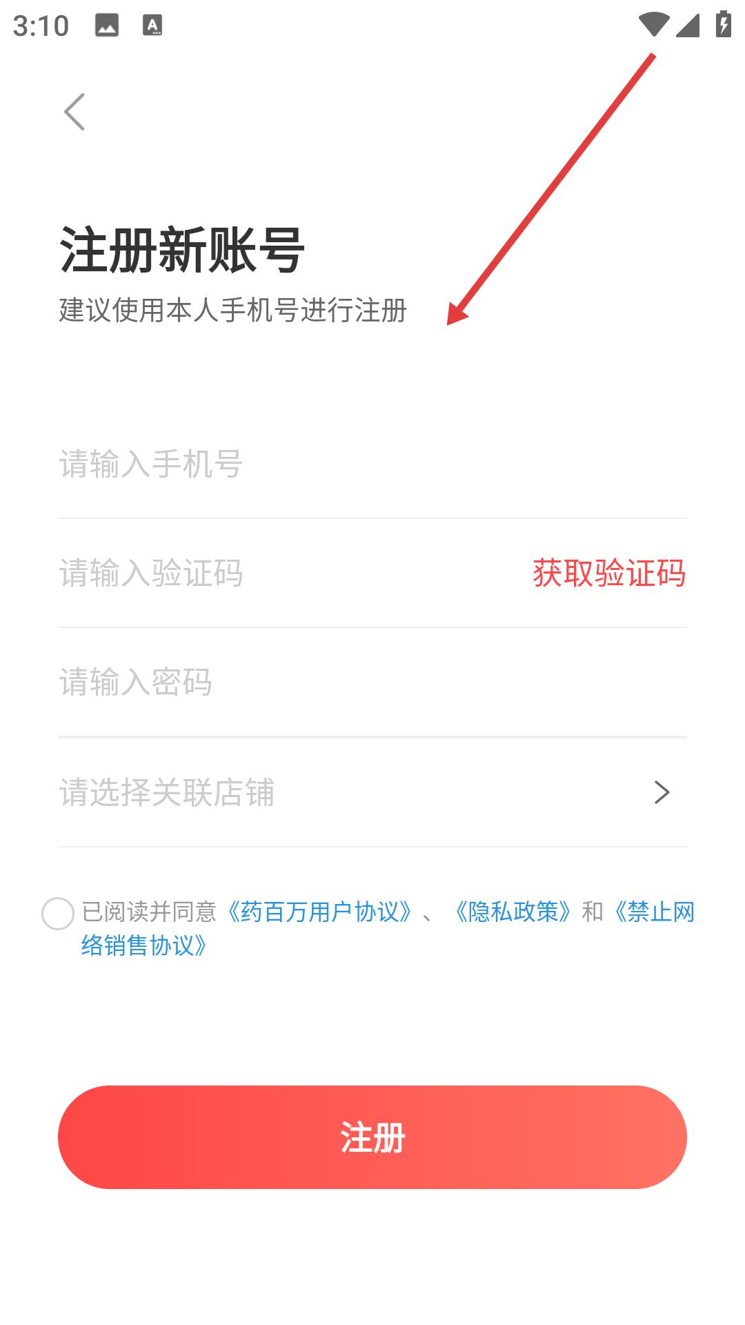 3、在注册新账户界面,根据提示输入手机号、验证码和密码。选择关联的店铺,勾选同意相关协议的复选框,然后点击注册按钮完成注册。