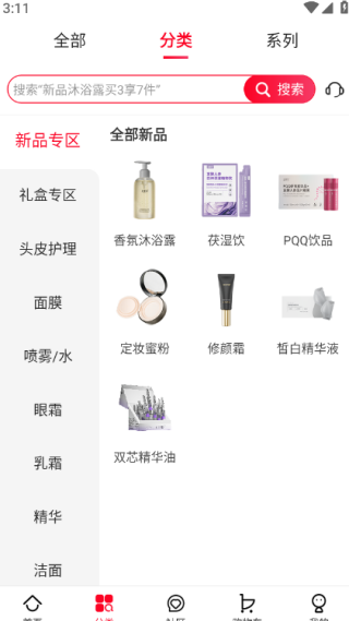 2、商品进行了全面细致的分类,方便用户在线找到适合自己肌肤的产品。