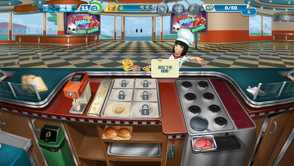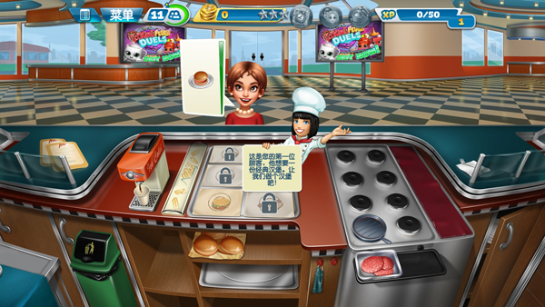 进入游戏如图,玩家需根据顾客要求来制作食物。