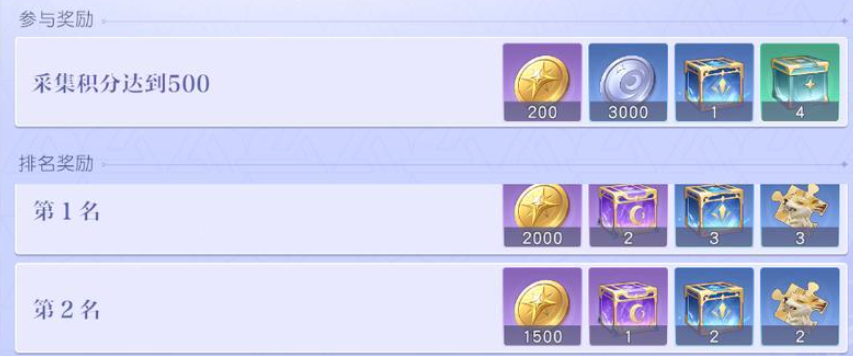 而在玩法当中大家可以建议开启竞赛之后再集中再去进行采集,这样的话还可以达到活动参与奖励,当前参与此类竞赛效果里面会分为个人版以及团队参与版,不同的参与版本对于当前大家的状态是有要求的,如果大家是在组队的过程当中看到这个竞赛的话,可以参与的是小队版本的竞赛,而当前是个人在采集的话,可以参与的是个人的竞赛版本,而在规定时间之内采集的数量最多的队伍或者是玩家,在这里可以获取到奖励说明是根据当前的排名进行奖励发放,每天给到的奖励都是一样的,但是在其中这个奖励是非常有用的,其中有非常多的采集材料,所以不喜欢慢慢的收集,大家就可以参与这个活动,其中的各类采集材料通过活动直接一次性通过宝箱送给大家,所以这个竞赛每天一次的开放时间大家还是可以摸索出来,让自己获取到更多的采集资源的。