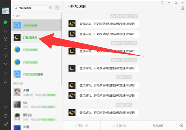 1、打开微信,搜索月轮加速器服务号