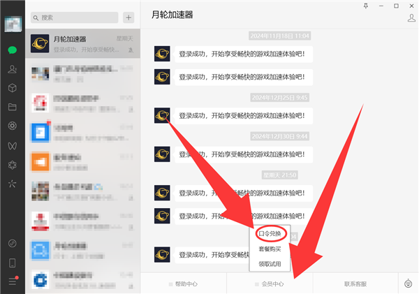 2、在微信公众号下方点击会员中心选择口令码兑换
