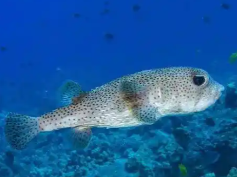 密斑刺鲀是一种常见的大体型刺鲀种类,身体结实,体长可达90厘米。它不善游泳,行动缓慢,白天多栖息在岩洞或石堆中,傍晚才出来觅食。