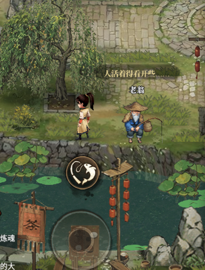 少侠可在河边老翁处购买基础钓竿开始钓鱼,鱼饵可通过野外采集或向老翁购买获得。