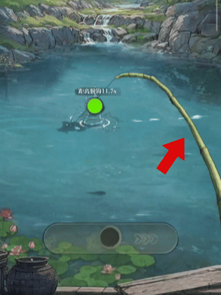 第三步:抛出鱼竿后,我们需要等待鱼咬钩。