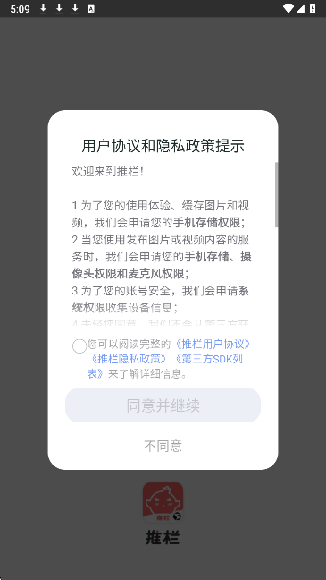 1、打开app,同意用户协议。