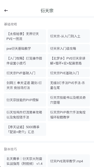 3、点击您需求查询的门派攻略,例如[衍天宗]为例。即可看到海量门派教程。