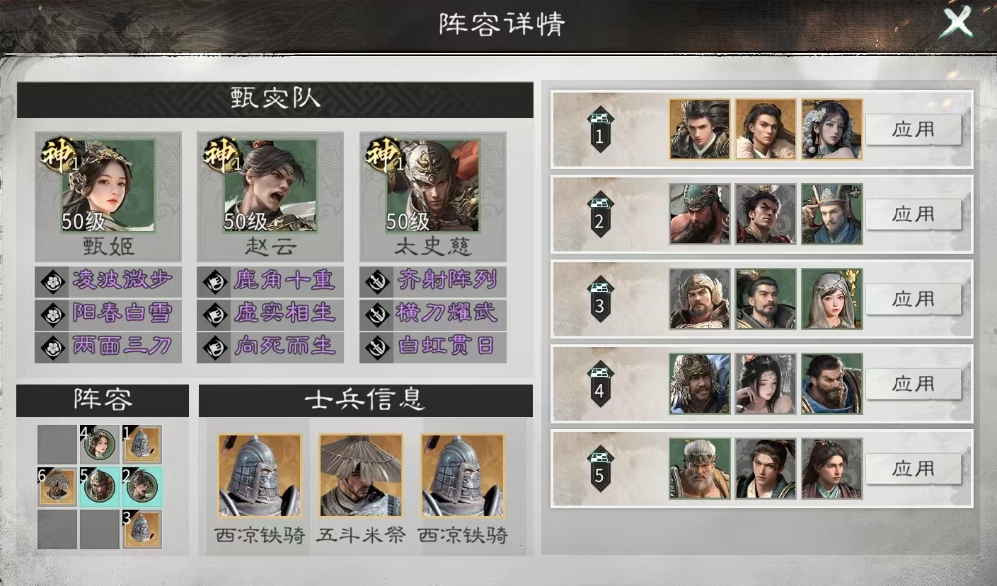 在阵容构筑上,甄姬最契合反击流体系,尤以“赵云+太史慈+甄姬”铁三角组合表现最为突出。赵云承担主力反击输出与前排抗压,太史慈提供高频普攻触发反击与稳定爆发,甄姬则专注后台支援,通过高频治疗与状态叠加维持双输出单位持续作战能力。该体系不依赖复杂连携,成型快、容错高,适用于开荒推图、资源副本及PVP对抗等多种场景。