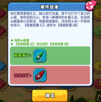 怪兽胶囊(3/3):如若在事件2中没有将胶囊升为绿色,则可以在事件3中选择“用爱感化”,将“怪兽胶囊-红”升级“怪兽胶囊-绿”,消耗60点能量。