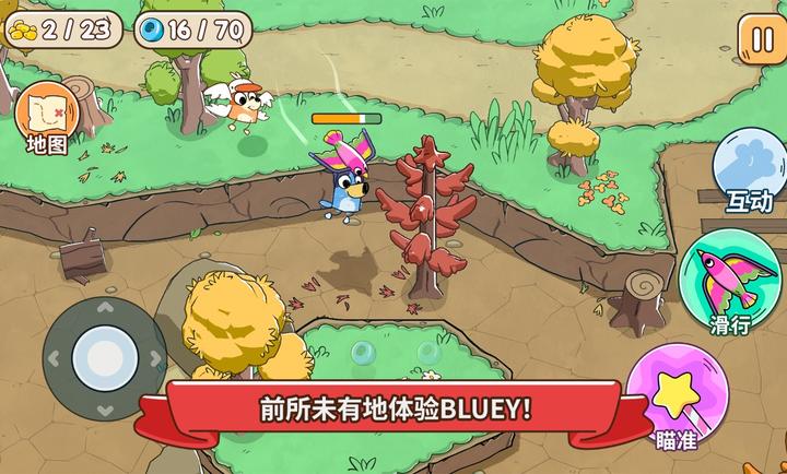 在游戏中,玩家可以体验脑洞大开的迷你任务,操控布鲁伊滑行过冰川,感受速度与激情,乘热气球在场景中飞行,享受浪漫又刺激的空中之旅,还可以在沙滩上滑冰,独特玩法带来新奇体验。游戏打破常规,让玩家体验别样的冒险乐趣。