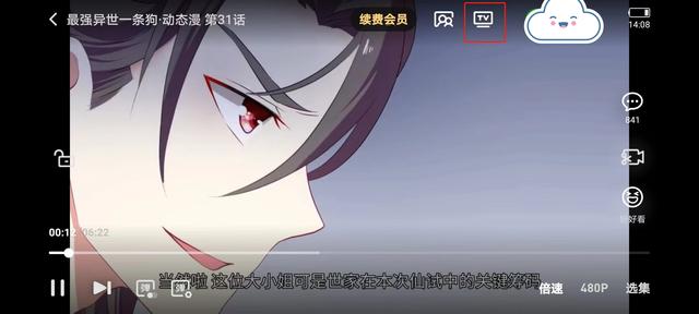视频播放后点击视频屏幕,会出现如下图TV的小图标,这就是投屏按钮。