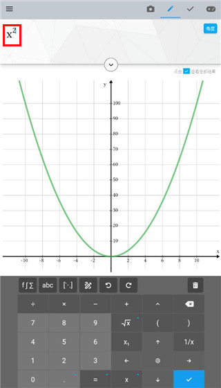 5、当打出x的平方时,还可以绘制出x二次方的函数图。