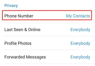 然后还是在这个界面,点隐私和安全,然后选电话号码,默认是你的联系人可见,你可以选择对所有人不可见(谁可以看见我的电话号码)。