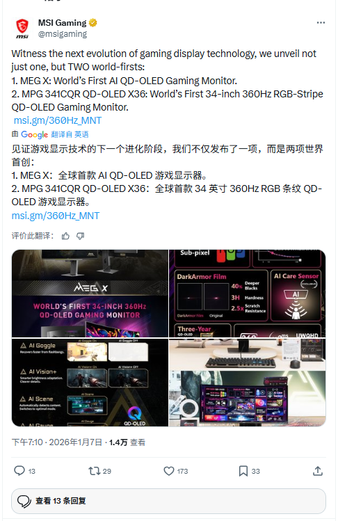 微星(MSI)在2026年国际消费电子展(CES)上发布了新款电竞显示器“MEG X”,搭载多项被玩家戏称为“硬件外挂”的AI辅助功能,引发广泛讨论。官方介绍显示,该产品内置“AI Tracker”技术,可自动识别游戏画面中的敌人位置并以高亮标记,帮助玩家快速锁定目标。另一项争议功能“AI Goggle”则能在玩家遭遇闪光弹致盲时,通过AI算法加速恢复画面清晰度,大幅降低视觉干扰,在射击类游戏中优势明显。