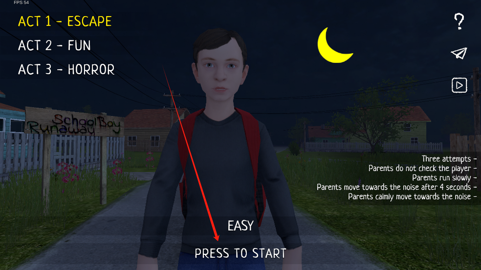 1、在本站下载安装好逃离家暴官方正版,运行游戏,进入游戏后你会发现是英文的,点击这个开始游戏。