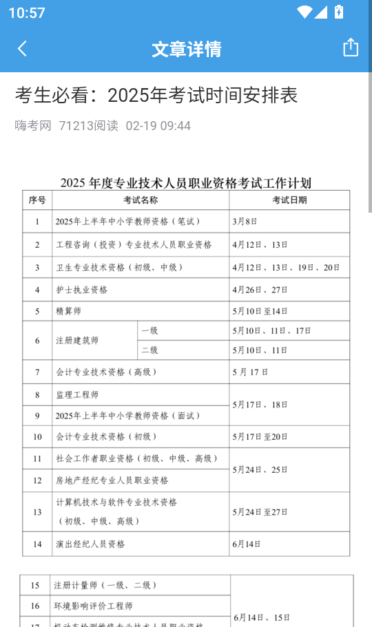 嗨考网app如何阅读热门考试资讯的文章详情内容?