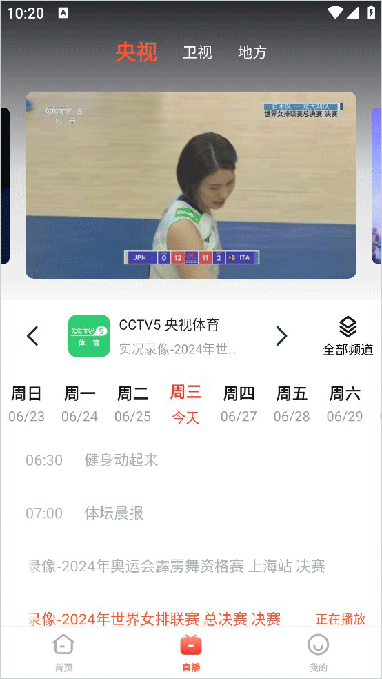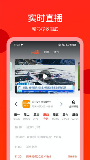 3、在直播版块内,可以看到当前频道的节目播放单。