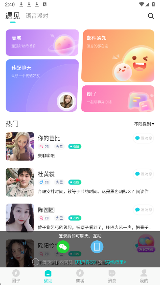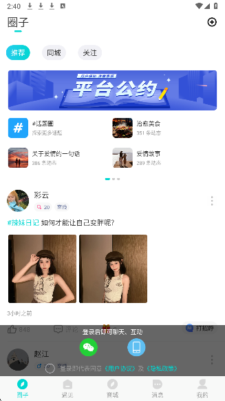 知味社区 可以让用户在同城附近在线聊天交朋友,在线约会,认识同城上陌生的朋友,3秒相识,5秒相识,随时随地和陌生的Ta聊天,偷偷约上喜欢的姐姐,让我们在这个城市里playplay。人气主播、即时在线、邻家妹子、少女美萌、高冷女神、成熟御姐、演员、明星,还有微博百万粉丝网红大v来跟你聊,让你避免尴尬的话题,抓紧时间面对面~只有你想不到,没有它做不到。感兴趣的朋友不要错过下载。