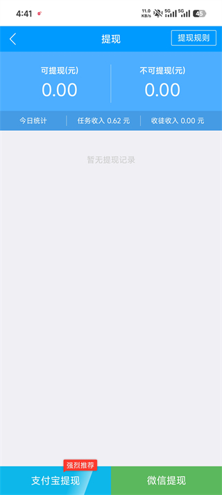 4、任务一完成,佣金即刻到账,支持1元起随时提现至微信支付宝。
