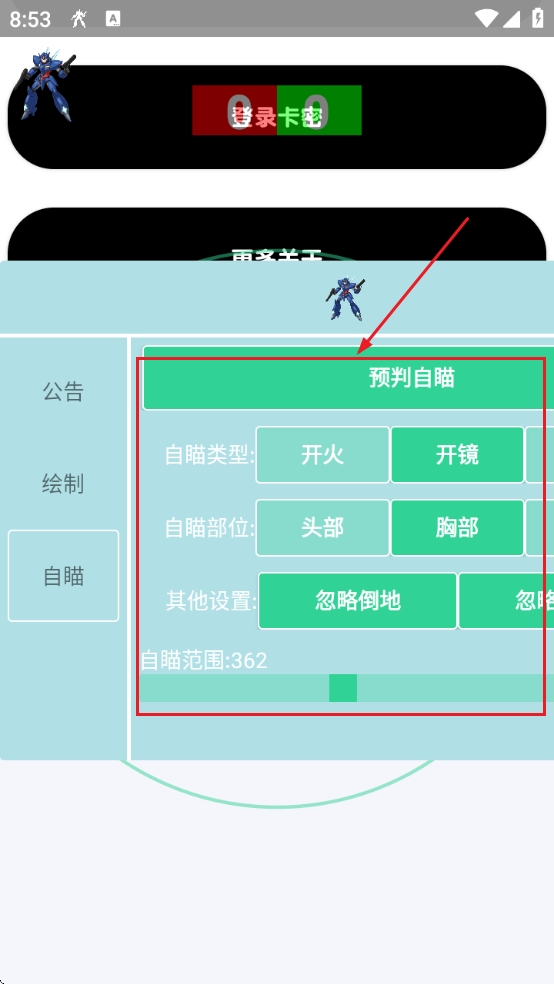 2、接下来我们可以通过自瞄功能来选择自瞄类型、自瞄部位等多种参数的设置。