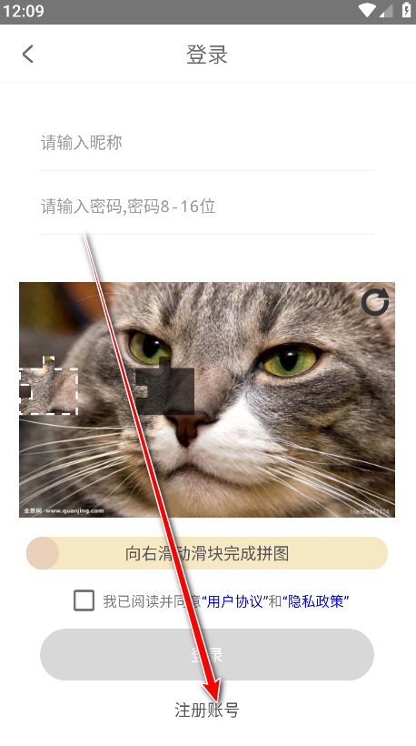 4. 输入您的昵称、电话号码、性别、密码,勾选“我已阅读并同意用户协议和隐私政策”,最后点击“注册”。