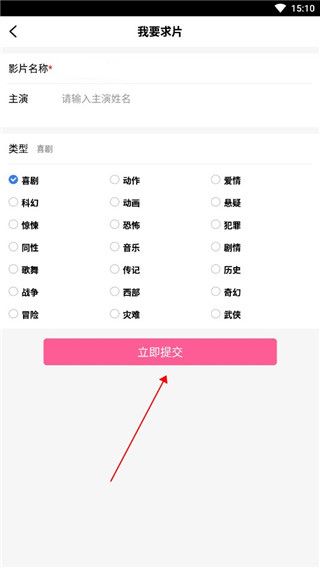 进入我的界面,点击“寻找电影社区”按钮,找到并点击“我要求片”选项。