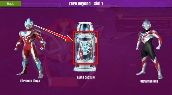 5、这个时候会出现两位奥特战士的图片,点击奥特胶囊中间的位置借用它们的力量。
