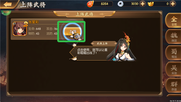 4、点击上阵,就可以让新武将出战。