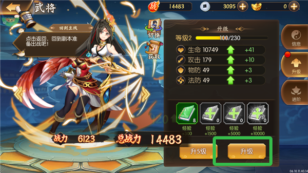 5、在武将界面,可为各武将升级。