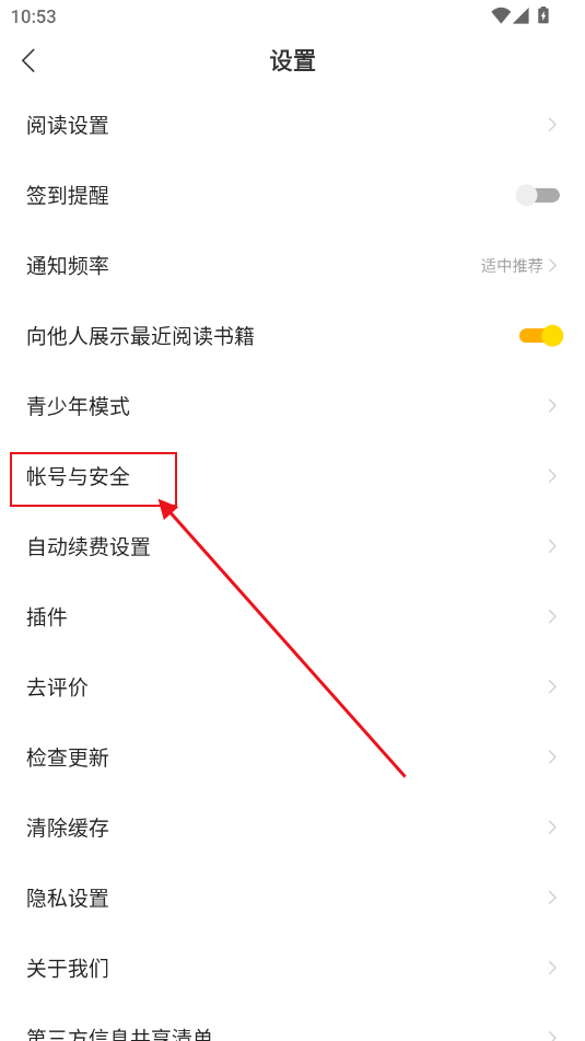 2、转到设置页面,单击“帐户和安全”选项。