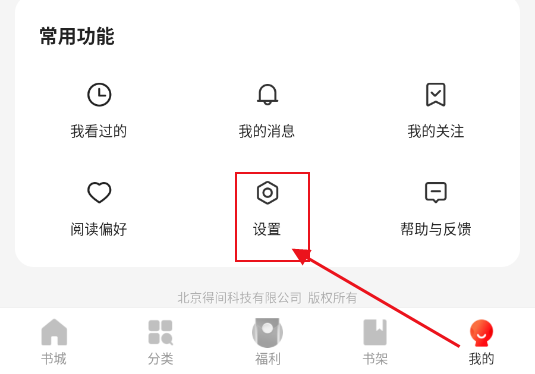 1、打开阅瓣免费小说,点击底部的“我的”选项,然后点击“设置”选项。