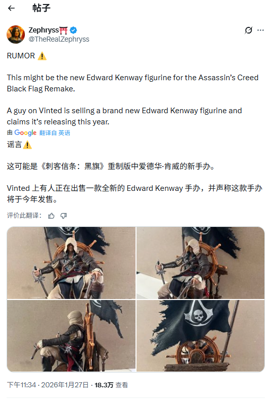 游戏行业泄密常见,但未官宣作品被多重线索曝光并引发发行商回应仍少见。近期《刺客信条4:黑旗》重制版传闻升温,一款疑似主角手办流出引发热议,育碧的间接回应更让该项目愈发神秘。