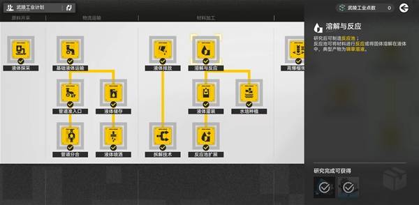 需求:点出 溶解与反应 工业,并需要从四号谷地仓库背来6组(50一组)中容/高容谷地电池、两组荞花以及一组砂叶,在成功铺开蓝图后把协议储存箱中的无线传输模式关闭,并将电池全部放到协议储存箱中。