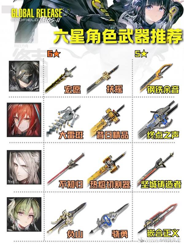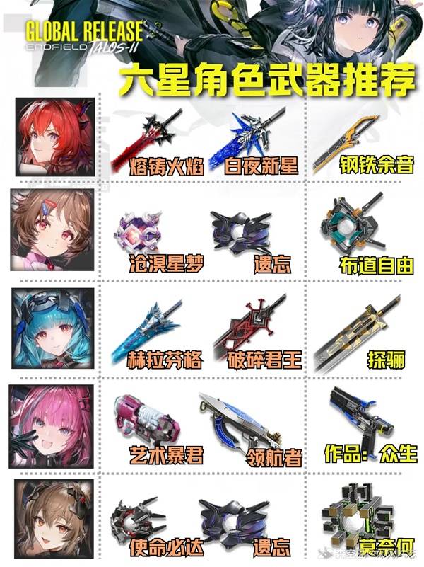 明日方舟 终末地中中各个6星角色用什么武器比较好呢?有着这个问题的玩家请看下方为大家带来的明日方舟终末地6星角色武器推荐,希望能够帮助到大家。