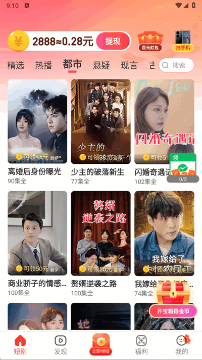1、打开软件,进入主页,那里有各种类型的短剧可供选择。