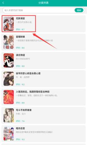 3、在类别列表中,单击红色框突出显示的小说,它将用鲜花填满房间。