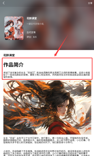 4、在细节页,阅读作品介绍,了解小说的内容。