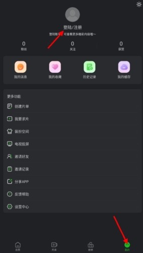 1、点击狮子影视app上的登录/注册按钮。