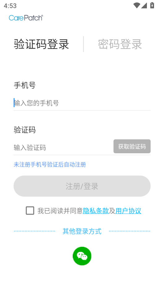 3、在验证码登录界面,您可以输入您的电话号码和验证码,然后单击“注册/登录”按钮一键登录。