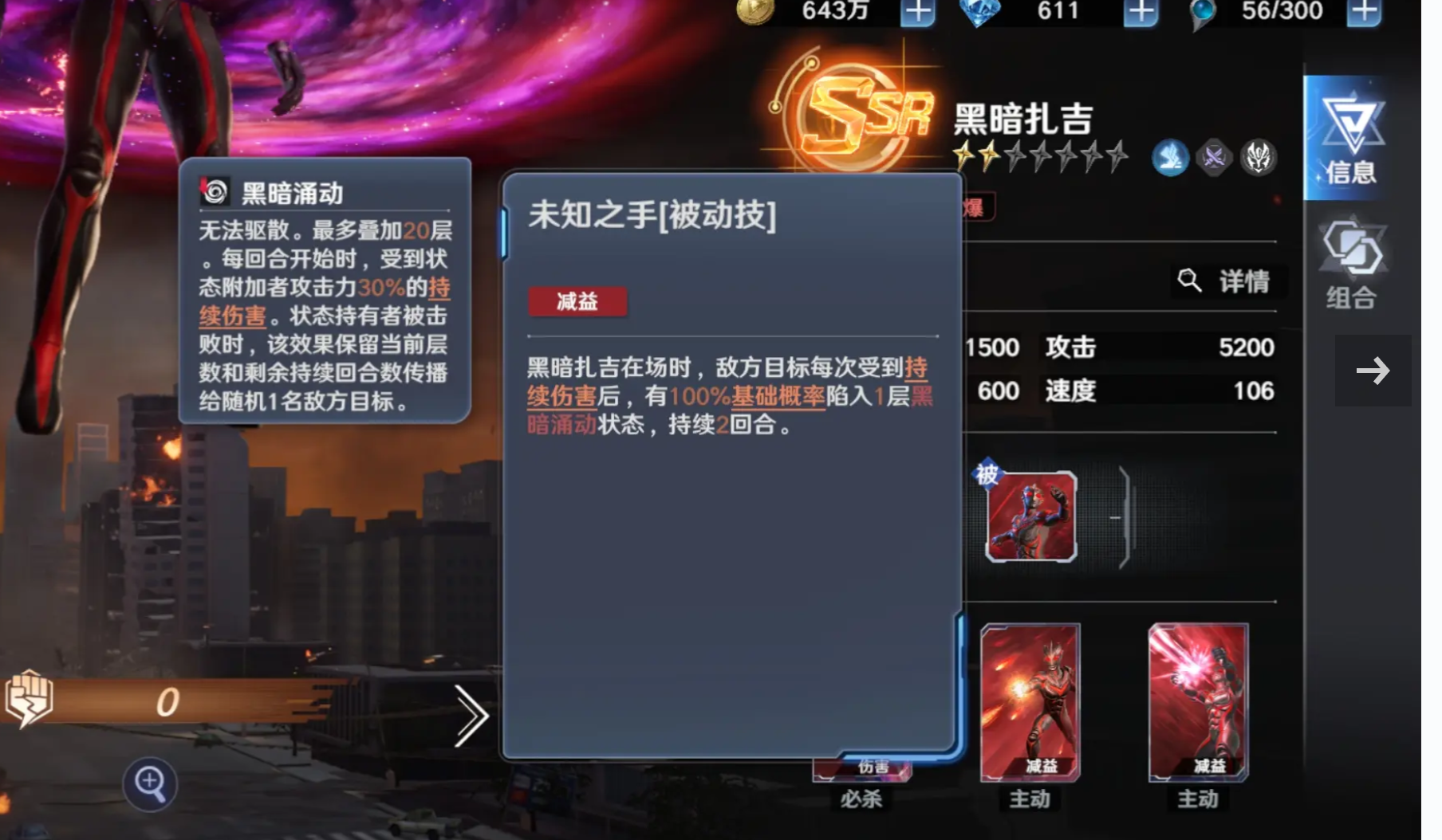 奥特曼光之战士黑暗扎古角色的强度还是很高的,主要依靠把持续百分比伤害和重力控制完美结合起来的深渊战斗体系。黑暗扎古的普攻暗能脉冲有很强的破盾能力,可以连续用能量波攻击目标并叠加名为黑暗涌动的持续减益状态。将叠层深度和输出上限深度绑定在一起的逻辑,使该角色面对高生命值的BOSS时具有很高的战术权重,在触发技能重力坍缩的时候,可以瞬间把大范围内所有的敌人牵引到核心地带,并且加快叠层的速度。