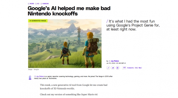测试中,《The Verge》编辑尝试生成包含迪士尼角色的《王国之心》场景时,Genie3因版权顾虑主动拒绝;而生成《塞尔达传说》主角林克滑翔片段时则顺利执行,仅在涉及《超级马里奥》时提醒用户“勿将AI生成内容用于营利”。尽管AI生成的游戏世界在可玩性上仍需优化,但其对经典IP的快速响应能力已引发行业关注,部分观点认为未来此类技术或可辅助游戏开发者快速构建原型。