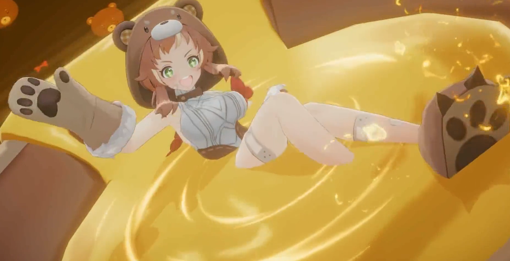 另外朵菈在被动技能效果上面有一个熊钢不坏的技能效果,使用的话会对于群体的敌人进行输出,此时只要是在朵菈3.5m范围之内的队友会带来的增益效果也体现在防御以及暴击效果上面,防御的增加达到80%,而暴击的增加达到40%,另外再有这个熊钢不坏的增益状态时,朵菈一般在造成攻击的时候会有100%的额外伤害,特别是在有一定速度加成的同时,20%的额外速度加成也会让她在持续8秒的时间之内灵活度更高一些,而朵菈的大招叫做熊熊烙印,通过这个技能可以直接将朵菈的身形达到巨大化的能力,目前对最接近她的一名敌人可以造成周围3m范围之内的攻击,对敌人来说造成的这个群体攻击每一个敌人都可以达到380%的伤害,并且让目标眩晕眩晕的时间当中,而对成为主要目标的一位敌人来说,这里造成的攻击力上面还有190%的额外伤害数值可以叠加,同样无视掉对面所有的防御数值的时候,造成的这个额外伤害就非常的管用,可以说是非常高的真实类型伤害效果,通过这个大招,朵菈可以一次性给敌人带来非常高的打击能力。