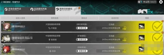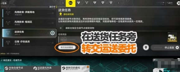 接取货物后,在任务界面的该送货任务旁,会出现“转交运送委托”按钮。