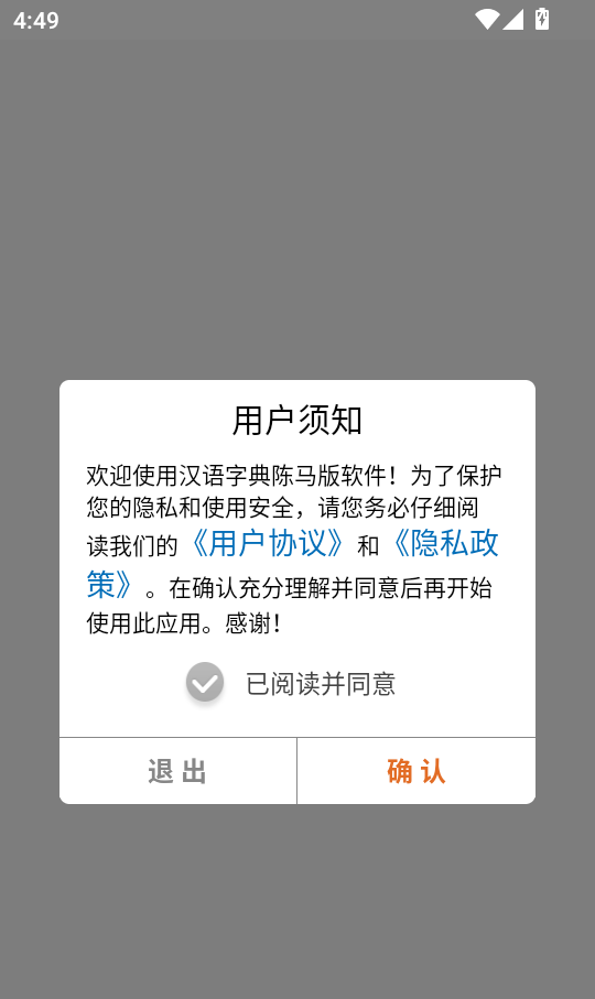 1、首先,打开软件并阅读“用户通知”,然后单击“确认”按钮进入程序。
