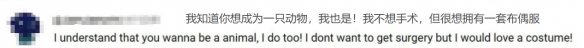 这不是玩笑。尽管从毛发到姿态都狗模狗样,但这确实是一位名叫Toco的日本男子。为了实现成为“狗”的心愿,他特意花费了200万日元定制了一套精致的仿真狗狗皮套。至于那些“花费700万整容成狗”、“在脸上安装狗嘴巴”甚至“锯掉双腿”之类的传言,则与前面的“犬类自我认同”一样,不过是事件在发酵过程中被层层渲染的夸张叙事。毕竟,只有足够猎奇的内容才能在互联网上掀起“腥风血雨”。