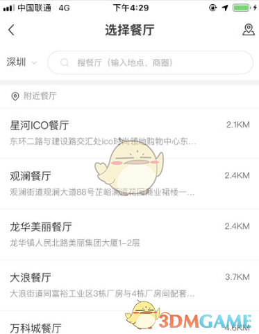 2、系统跳转后,如下图所示,选择你附近的餐厅。