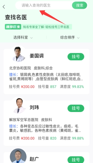 2、您可以使用部门过滤或搜索功能快速定位您想看的专家及其就诊时间。